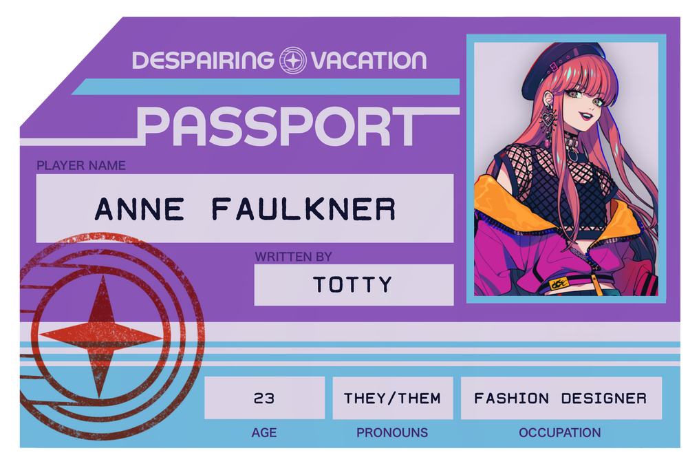 STATUS: ALIVEWhile they are typically charismatic and kindhearted towards the people they love, as the owner of the fashion brand SWANK and a member of hip-hop group BAE, Anne is no stranger to brutal honesty and will not hestitate to step in and speak their mind if they feel the need to do so. Anne is the type of person that sees people for who they are regardless of gender - man, woman, nonbinary, or even something entirely different - so rest assured, no judgement will come from them so long as you're not a bad person.